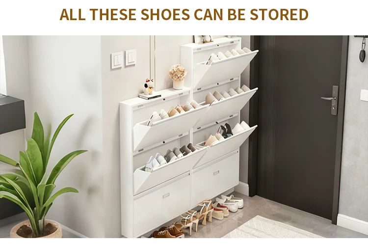 Inside, three storage layers and two drawers provide flexible organization for sneakers, flats, sandals, and everyday footwear — perfect for apartments, hallways, bedrooms, and offices.
